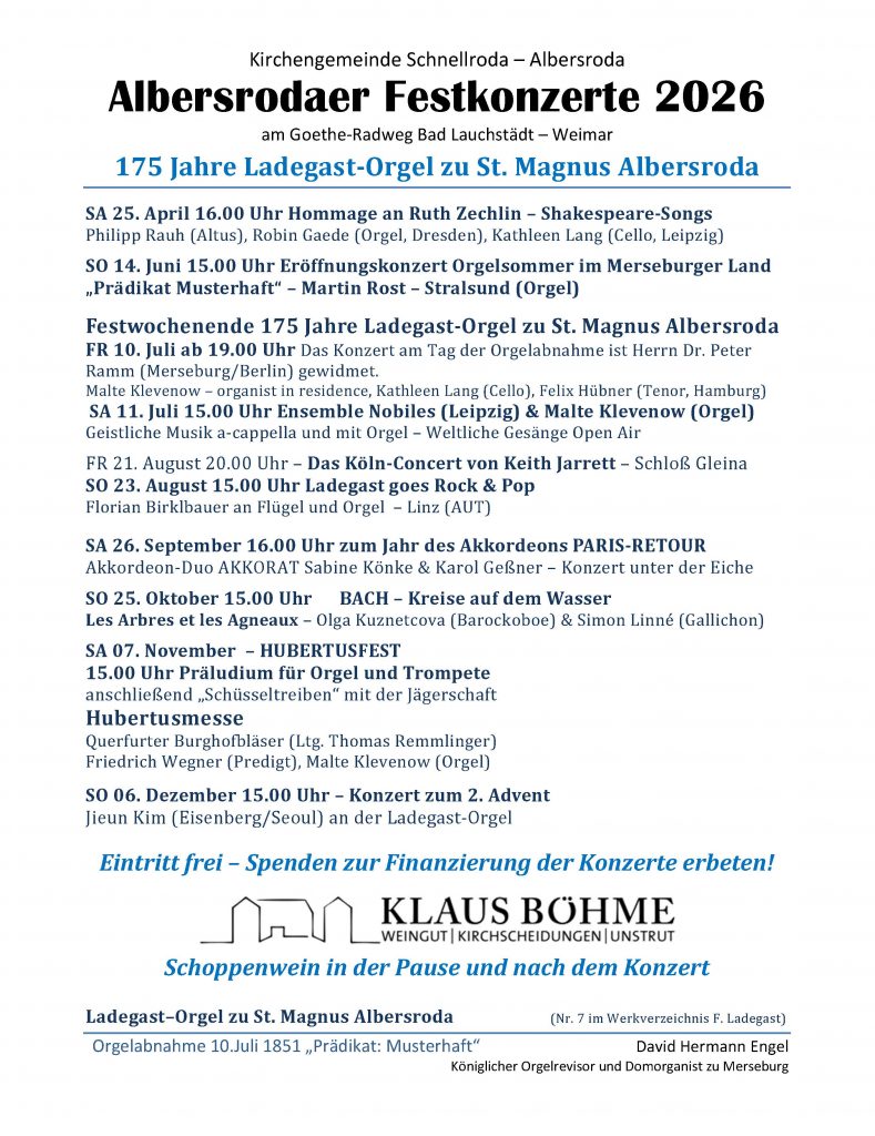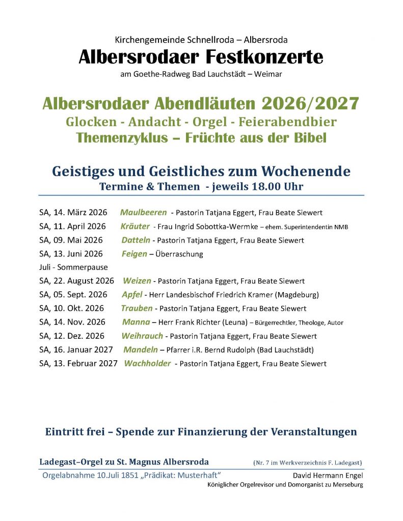 Hier die Ankündigung unser nächsten Veranstaltung in St. Magnus Albersroda.