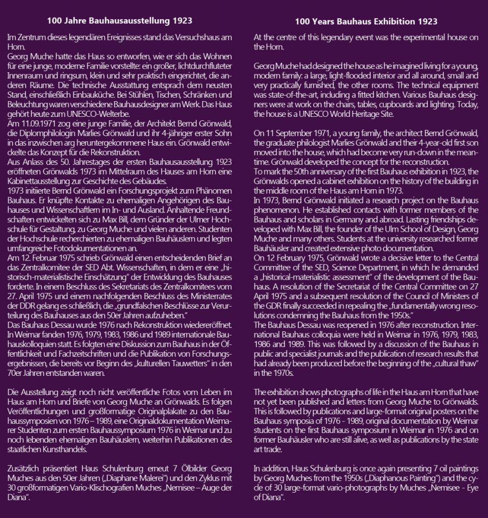 Nach dem großen Interesse zur Ausstellungseröffnung konnten wir Marlis Grönwald für eine Fortsetzung der Gesprächsrunde gewinnen. Wir sind der Meinung, dass rund um die privaten Einblicke noch längst nicht alle Geschichten erzählt sind. Ab 14.30 Uhr gibt Marlis Grönwald private und amüsante Einblicke in ihre Erlebnisse mit Bauhausgrößen wie Georg Muche, Max Bill und anderen. Sie bringt Dokumente mit, in denen Sie gern blättern können.